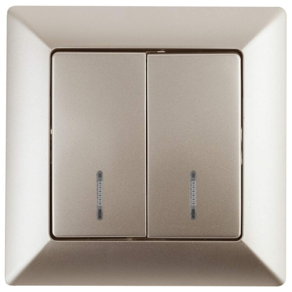 4-105-04 Выключатель двойной с подсветкой, 10А-250В, СУ, Solo, шампань (10/200/20 Б0043294, Выключатель и переключатель скрытого монтажа