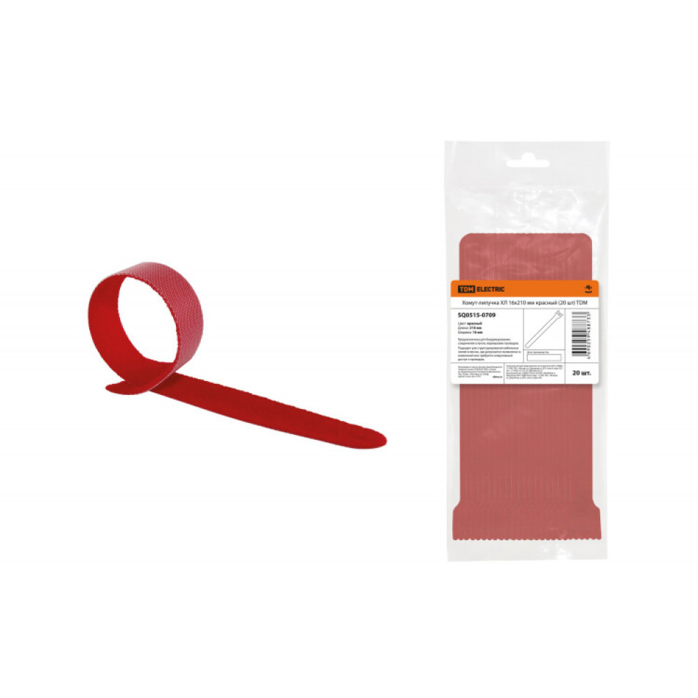 Описание Хомут-липучка ХЛ 16х210 мм красный (20 шт) SQ0515-0709
