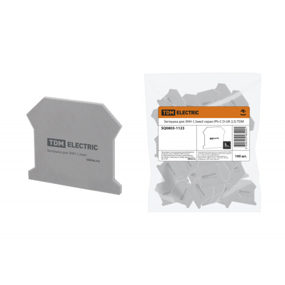 Заглушка для ЗНН-1,5мм2 серая (Ph-C D-UK 2,5) SQ0803-1123, Аксессуар для клеммы