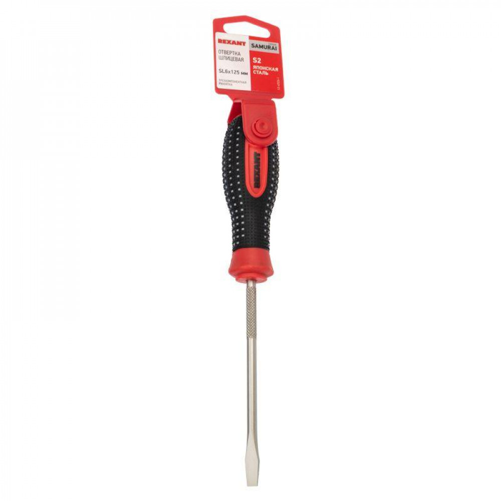 Описание Отвертка шлицевая SL6х125мм, трехкомпонентная рукоятка, сталь S2 12-4723-1