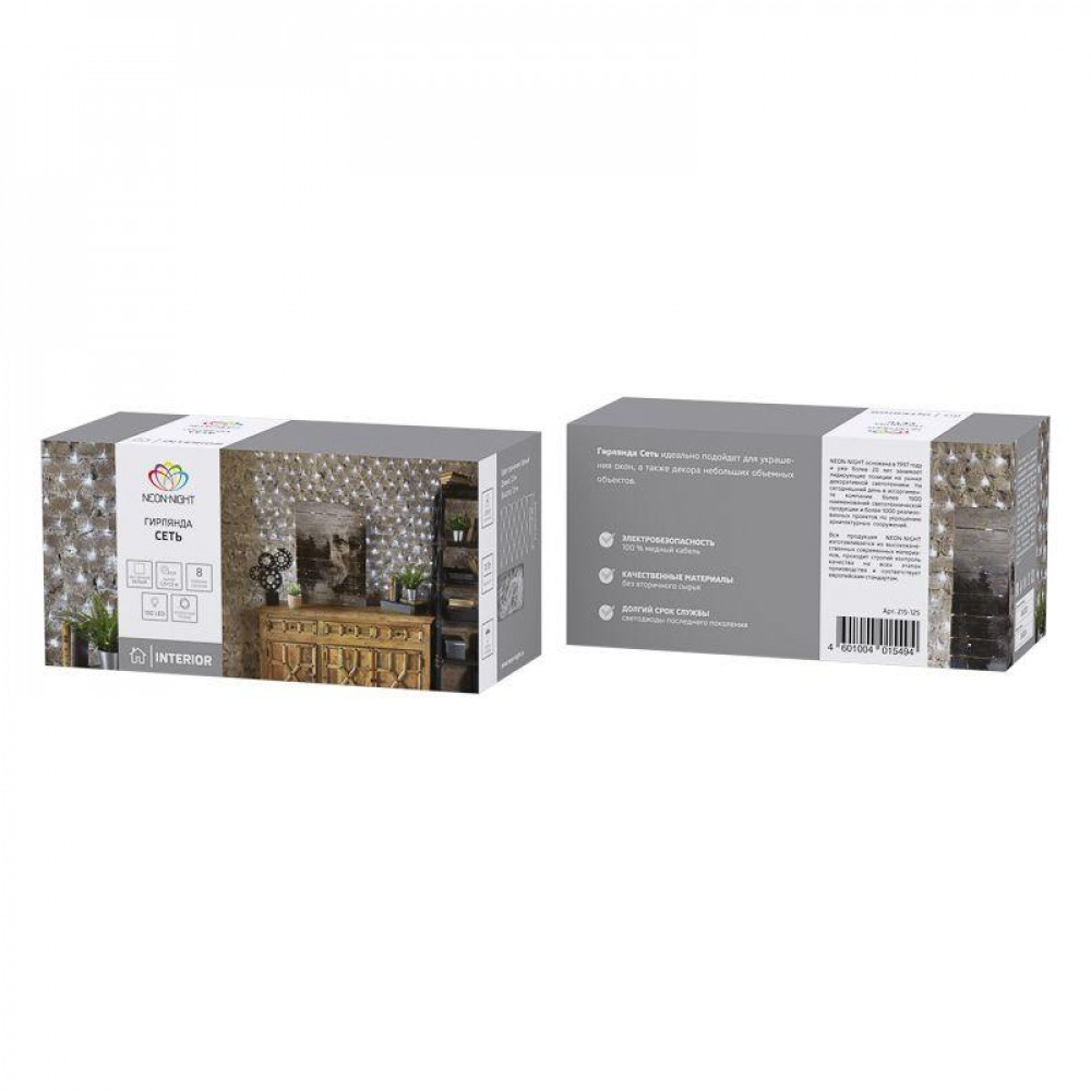 Описание Гирлянда Сеть 1,5х1,5м, прозрачный ПВХ, 150 LED Белые 215-125