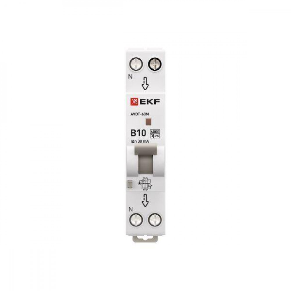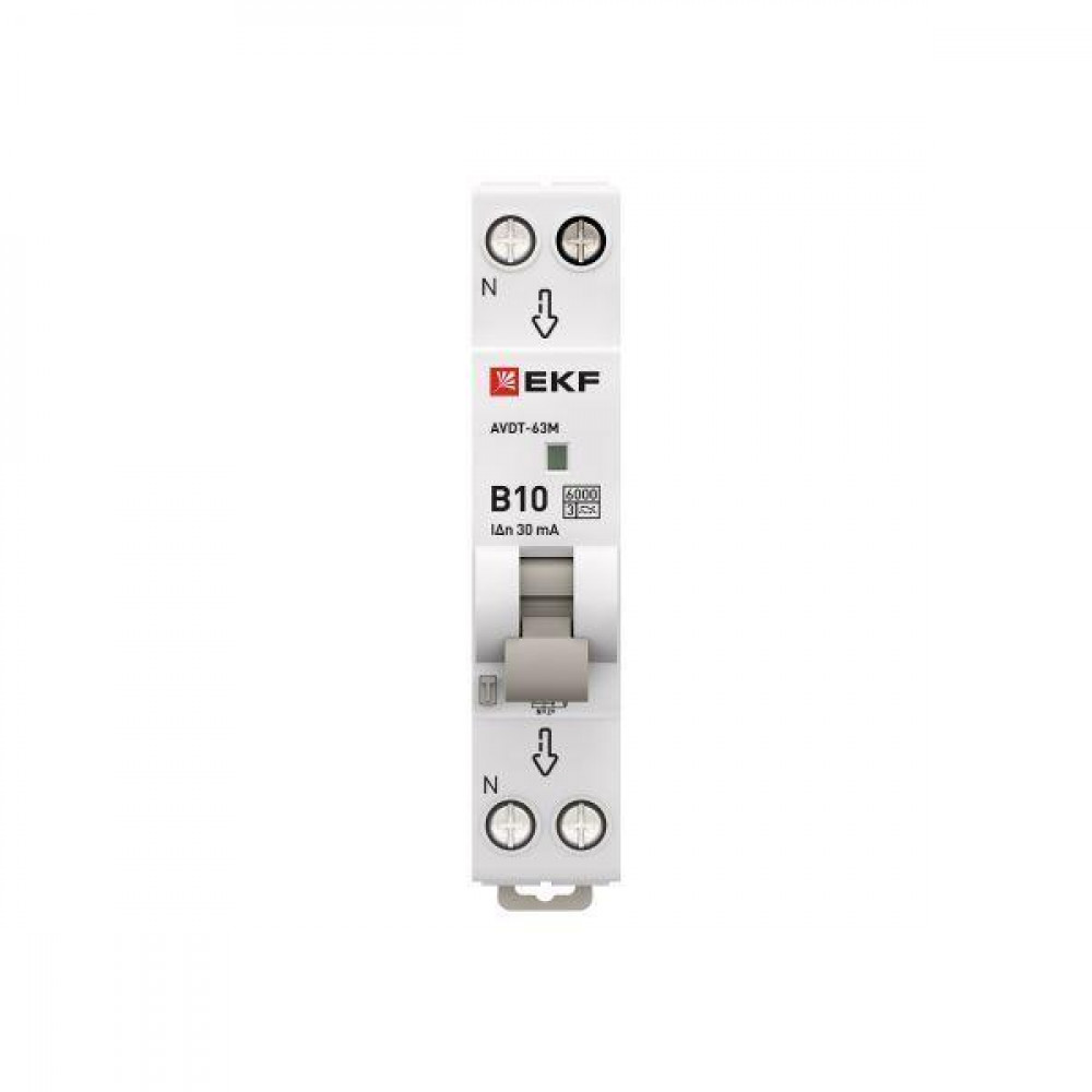 Автоматический выключатель дифференциального тока АВДТ-63 EKF PROхima представляет аппарат, сочетающий функции автоматического выключателя с электромеханическим или электронным УЗО. При обнаружении автоматическим выключателем в защищаемом участке сети тока утечки (повреждения) на землю или сверхтока (тока перегрузки иликороткого замыкания) происходит срабатывание устройства, приводящее к отключению защищаемой сети. Возможна коммутация алюминиевым и медным проводником.Автоматический выключатель дифференциального тока малогабаритный АВДТ-63М EKF PROхima представляет аппарат, сочетающий функции автоматического выключателя с электронным УЗО типа АС в компактном корпусе шириной один модуль. При обнаружении автоматическим выключателем на защищаемом участке сети тока утечки (повреждения) на землю или сверхтока (тока перегрузки или короткого замыкания) происходит срабатывание устройства, приводящее к отключению защищаемой сети. Особое отличие дифференциальных автоматических выключателей EKF с электронным УЗО – в наличии блока защиты от перенапряжения. Возможна коммутация алюминиевым и медным проводом.