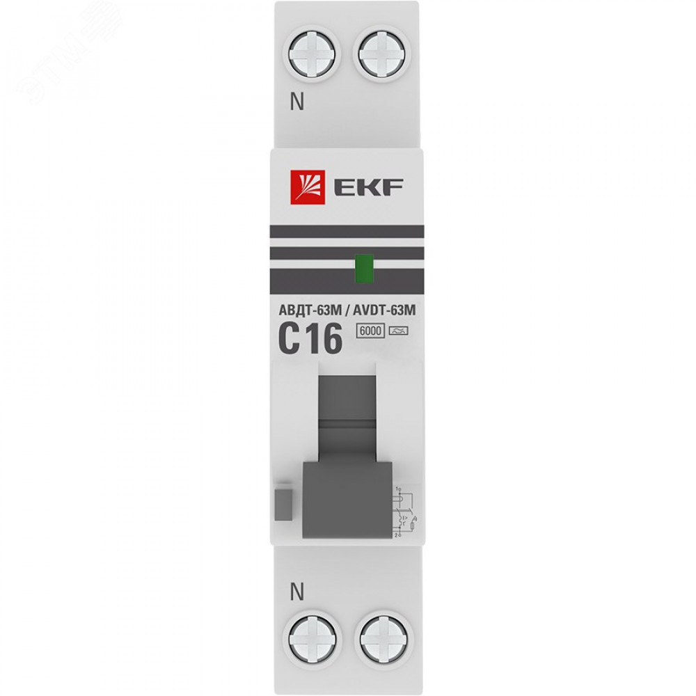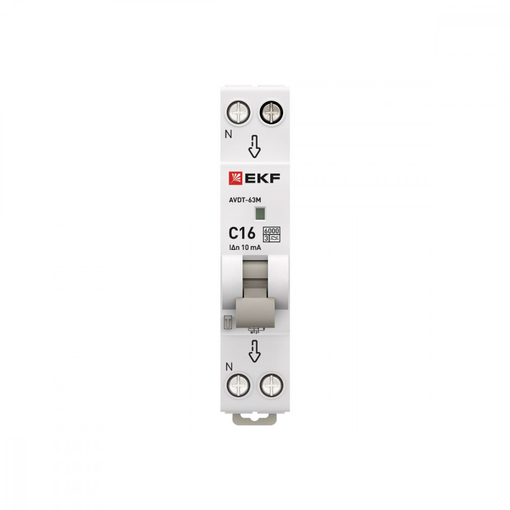 Дифференциальный автомат АВДТ-63М 16А/10мА (1мод, хар. C, электронный, тип A) 6кА PROxima D636EA16C10, Дифференциальная защита: УЗО, дифф блок