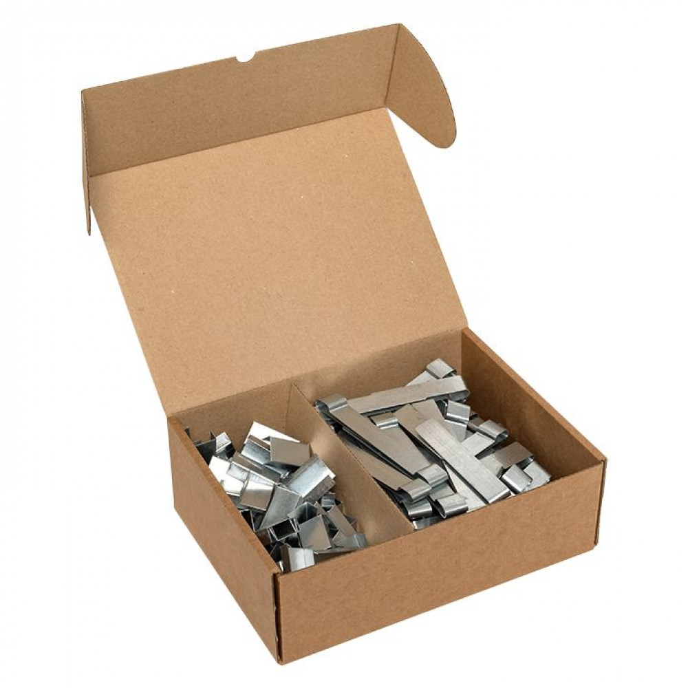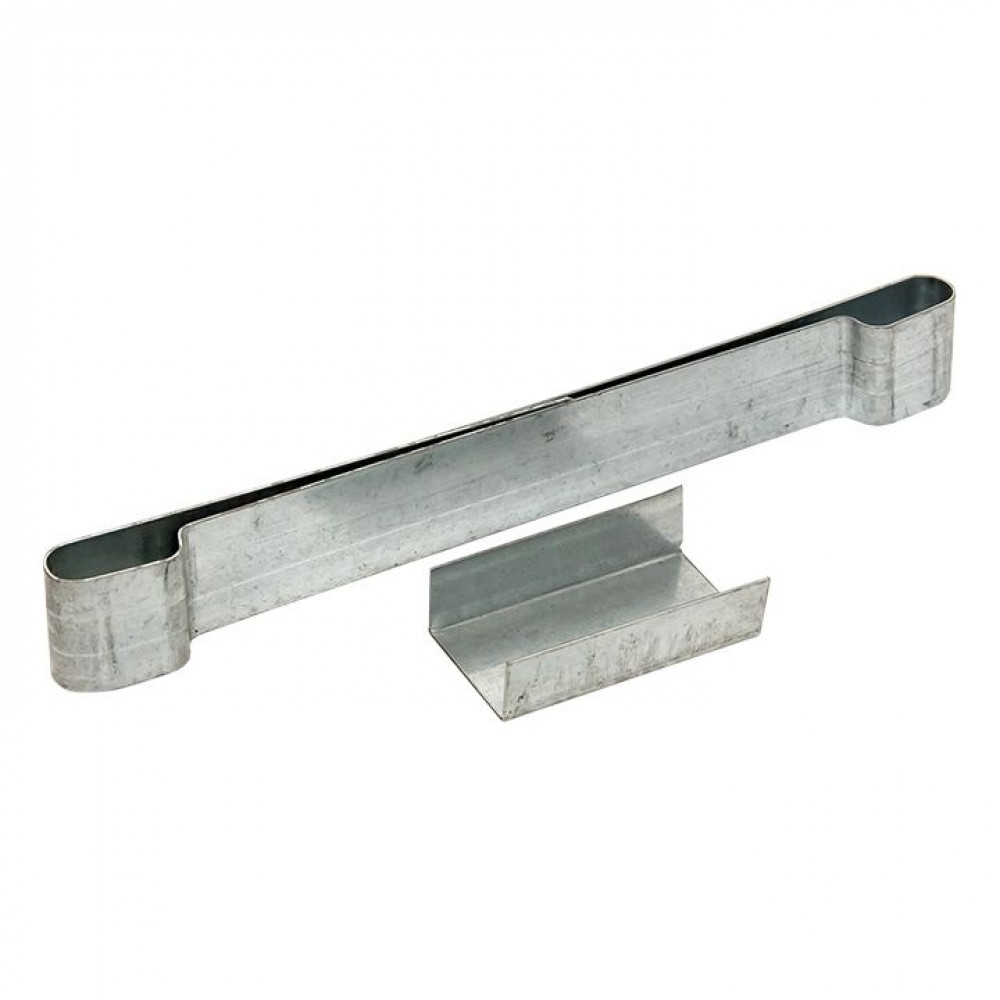 Металлический крепеж ТСР, КТСР представляет собой унифицированный крепеж, изготовленный из оцинкованной стали для крепления как саморегулирующихся (ТСР), так и резистивных нагревательных кабелей постоянной мощности (КТСР). Позволяют осуществить надежное и безопасное крепление нагревательных кабелей в обогреваемых зонах и предотвращает скручивание или самопересечение двух ниток кабеля между собой при монтаже. Выпускается для крепления как одной нитки кабеля к обогреваемой поверхности, так и двух ниток нагревательного кабеля между собой. Для монтажа зажимов в обогреваемых желобах применяется полоса стальная оцинкованная 0,5х15 мм, для монтажа зажимов с нагревательным кабелем в водосточных трубах – трос стальной в ПВХ оболочке.