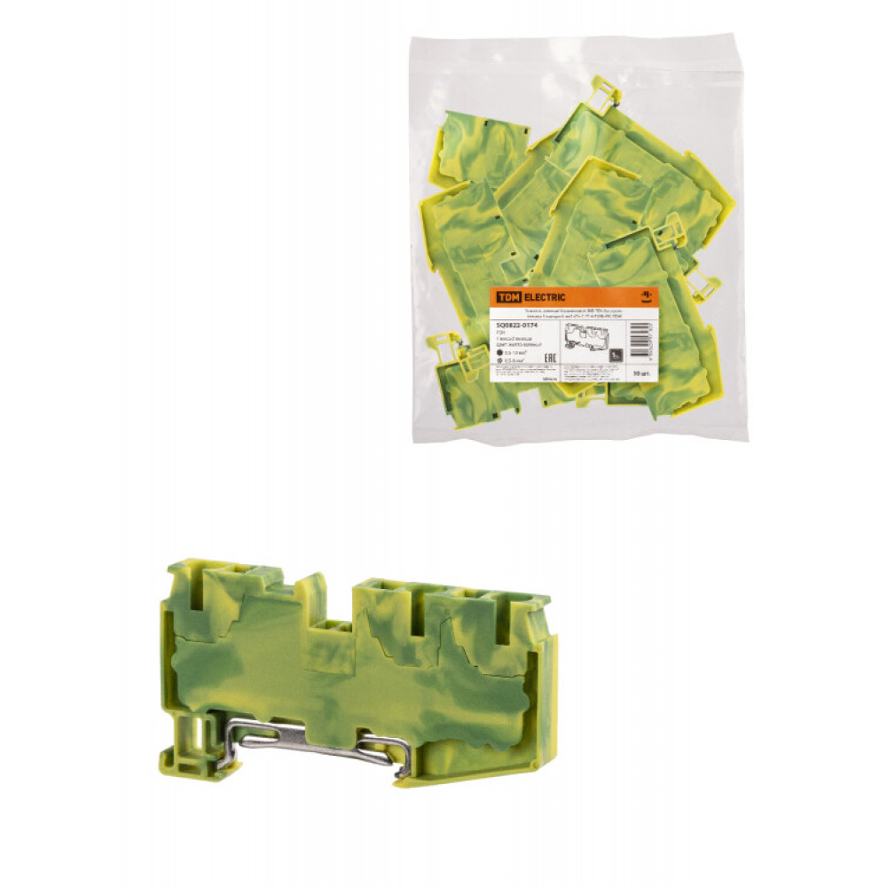 Зажим клеммный безвинтовой ЗКБ PEN быстрого зажима 3 вывода 6 мм2 (Ph-C PT 6-TWIN-PE) SQ0822-0174, Клемма на DIN-рейку