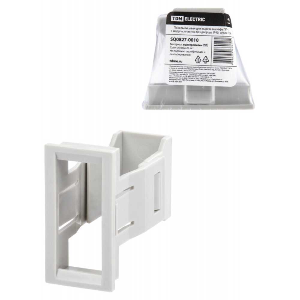 Описание Панель лицевая для выреза в шкафу ПЛ-1, 1 модуль, пластик, без дверцы, IP40, серая SQ0827-0010