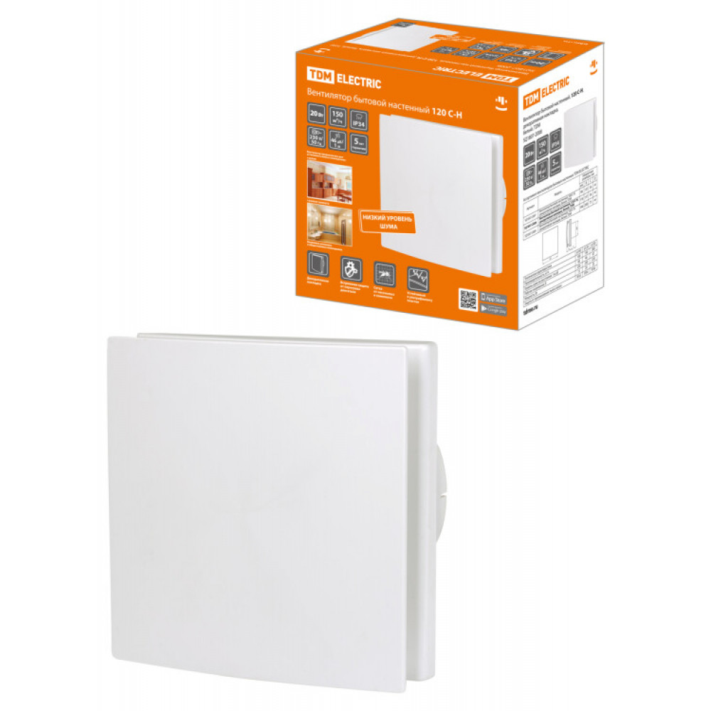 Вентилятор бытовой настенный, 120 С-Н, декоративная накладка, белый, SQ1807-2008, Система вентиляционная