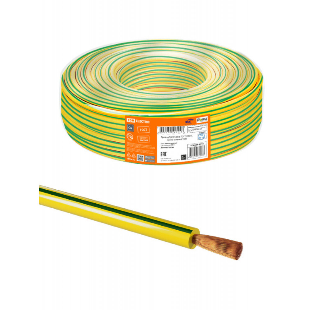Описание Провод ПуГВ 1х0,75 ГОСТ (100м), желто-зеленый SQ0124-1515
