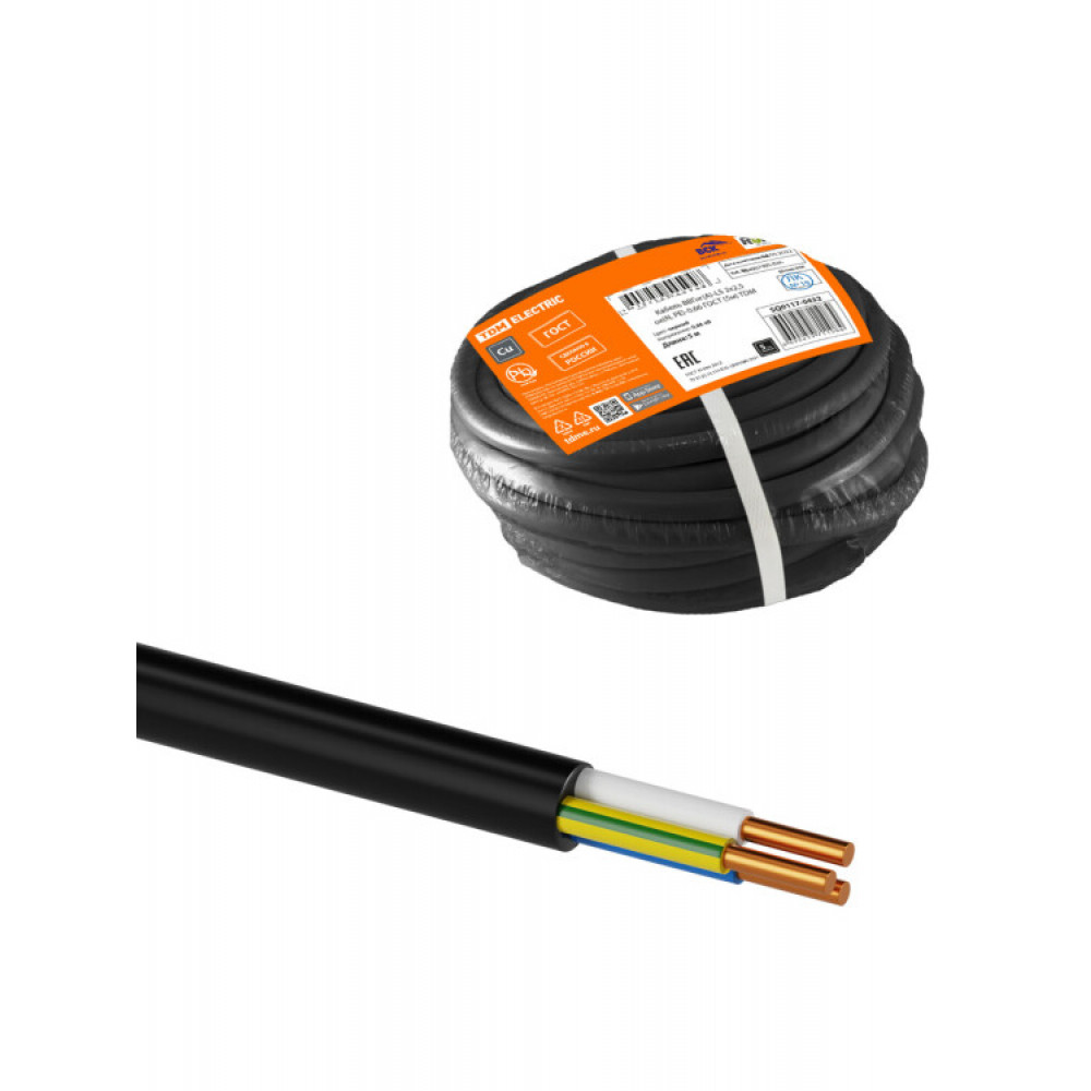 Кабель ВВГнг(А)-LS 3х2,5 ок(N, PE)-0,66 ГОСТ (5м) SQ0117-0432, Кабель и провод силовой для стационарной прокладки