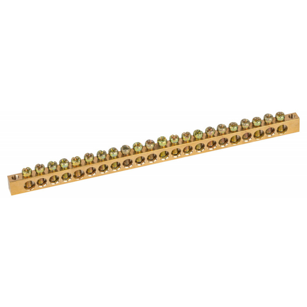 Шина NO-122-10 PEN земля-ноль 6х9мм 22/2 латунная с креплениями по краям Б0047224, Блок клеммный и нулевая шина