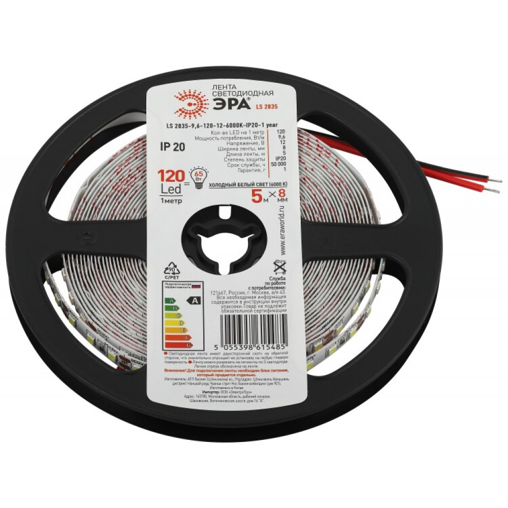 Светодиодная лента LS2835 9,6-120-12-6000K-IP20-1 year белая 5м Б0053969, Лента светодиодная одноцветная белая