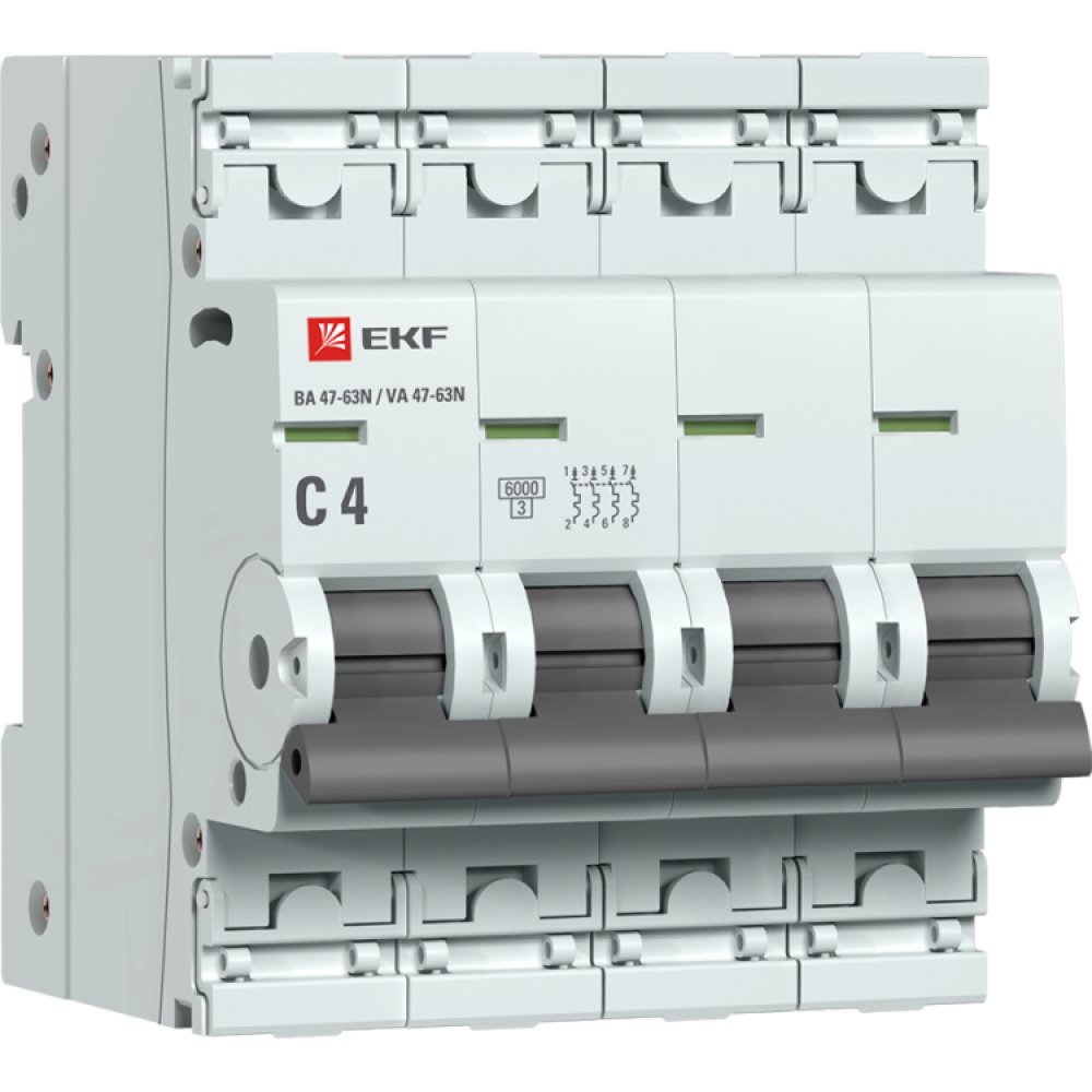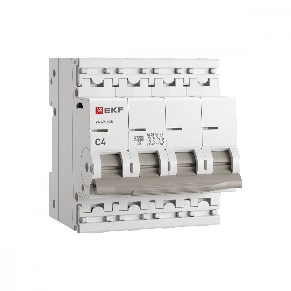 Автоматический выключатель 4P 4А (C) 6кА ВА 47-63N PROxima M636404C, Выключатель автоматический модульный