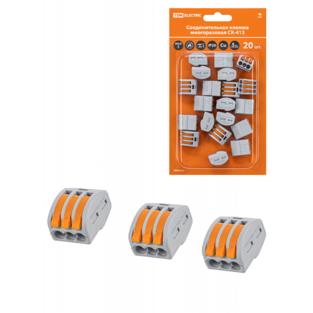 Соединительная клемма СК-413 (2,5мм) (20 шт/блистер) SQ0527-0008, Строительно-монтажная клемма и скрутка