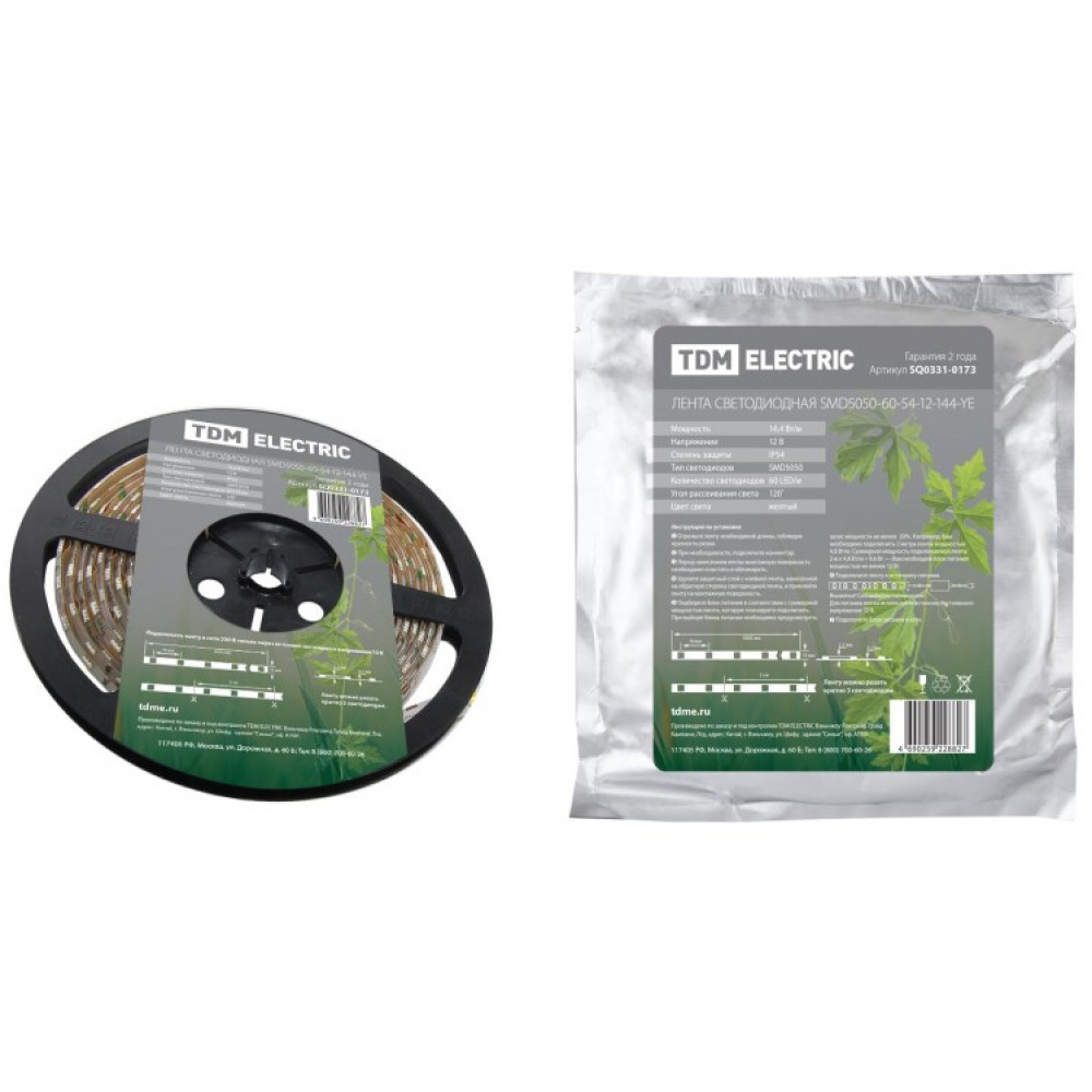 Описание Лента светодиодная SMD5050-60-54-12-144-YE 60LED/м, IP54, 12В, 14,4Вт, желтый, (У) TDM (кр.5м)