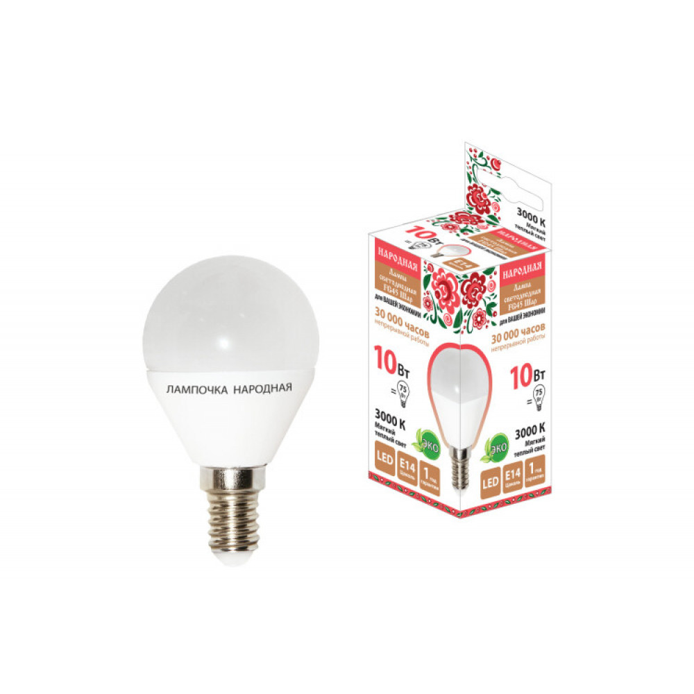 Лампа светодиодная FG45-10Вт-230В-3000К–E14 Народная SQ0340-1604, Лампа светодиодная