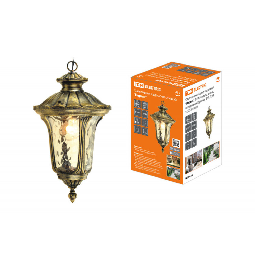 Описание Светильник садово-парковый "Париж" 60 Вт, подвес, алюм., прозрачное/бронза, Е27, SQ0330-0214