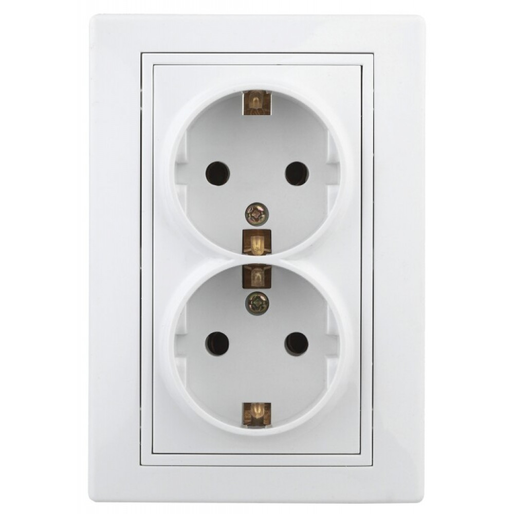 Доставка Розетка Plano 1Э-208-01 с заземлением двойная 2X2P+E Schuko со шторками, 16А-250В, СУ, без лапок, белый Б0038833