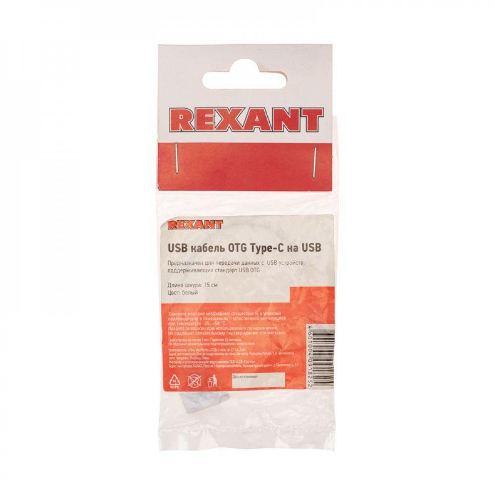 Описание Кабель OTG Type C на USB/2,4A/PVC/white/15cm/18-1180