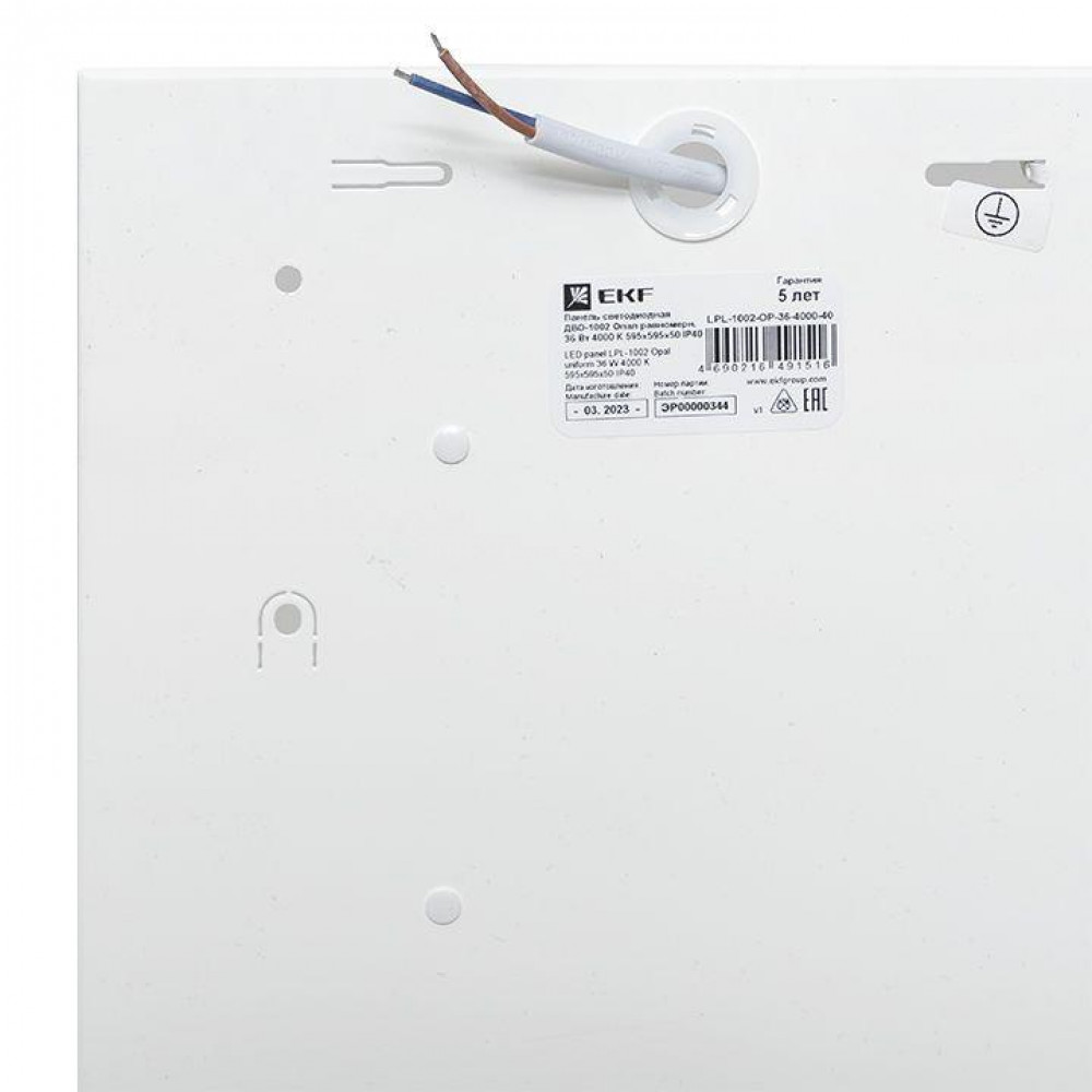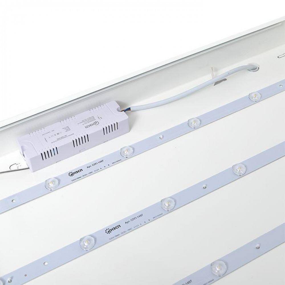 Описание Светильник светодиодный ДВО-1002 36Вт 4000К IP40 595х595х50 опал равномерн. панель LPL-1002-OP-36-4000-40