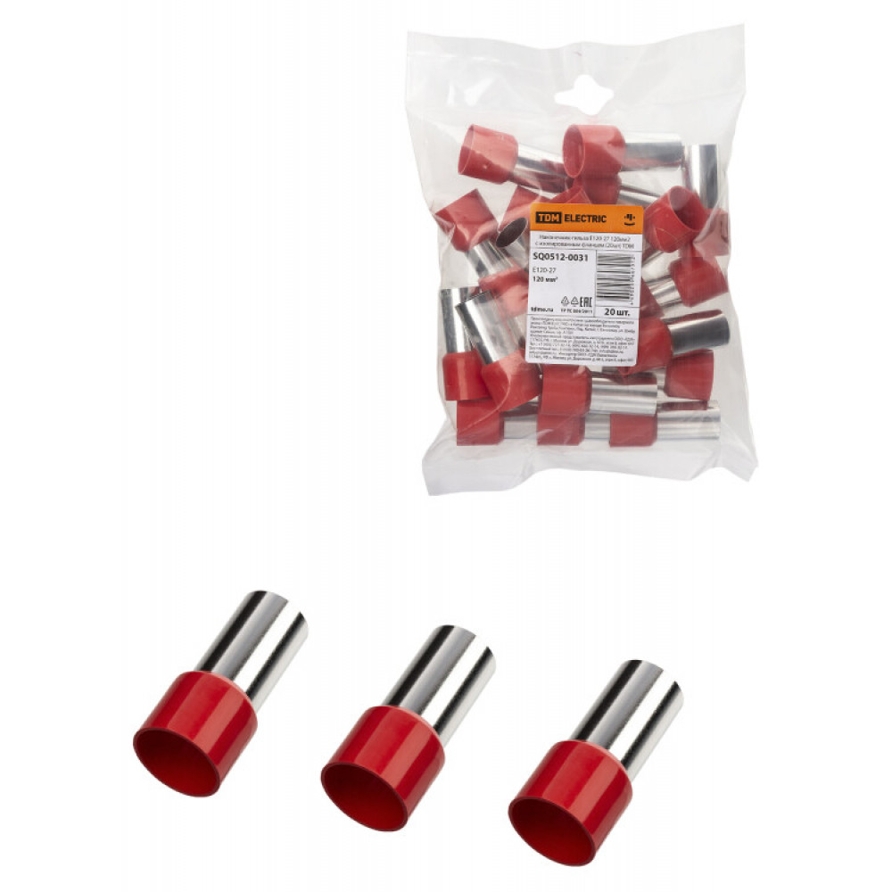 Наконечник-гильза Е120-27 120мм2 с изолированным фланцем (20шт) SQ0512-0031, Наконечник, гильза