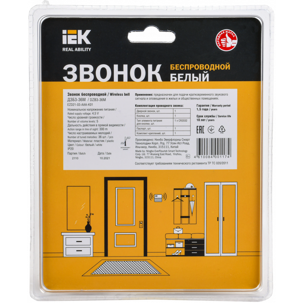 Описание Звонок беспроводной ДЗБ3-36М белый EZD21-03-AAA-K01