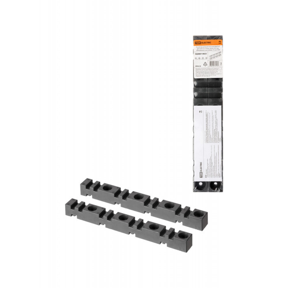 Изолятор шинный плоский ИШП 4П для шин 5 и 10 мм, длина 303 мм, межшинное расстояние 75 мм SQ0807-0023, Изолятор внутришкафной и аксессуар к нему
