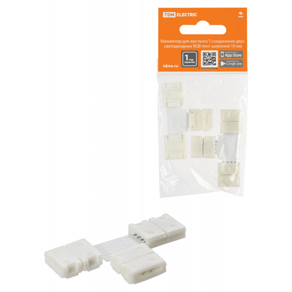 Описание Коннектор для жесткого T-соединения двух светодиодных RGB лент шириной 10 мм, (уп. 2 шт), TDM (кр.1шт)