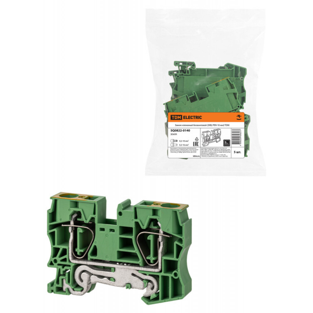 Зажим клеммный безвинтовой (ЗКБ) PEN 10мм2 SQ0822-0140, Клемма на DIN-рейку