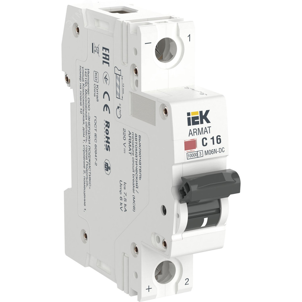 Доставка Автоматический выключатель ARMAT M06N-DC 1P C 16А AR-M06N-1-C016DC