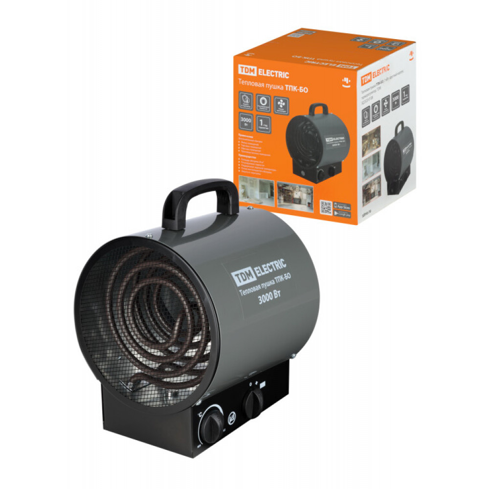 Тепловая пушка ТПК-БО, 3 кВт, круглый корпус, терморегулятор, SQ2520-0108, Обогреватель электрический