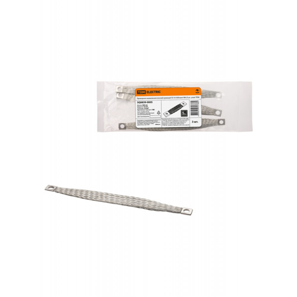 Описание Проводник заземления плоский луженый ПЗ 10-500 (3 шт. упак) ТDM SQ0839-0005