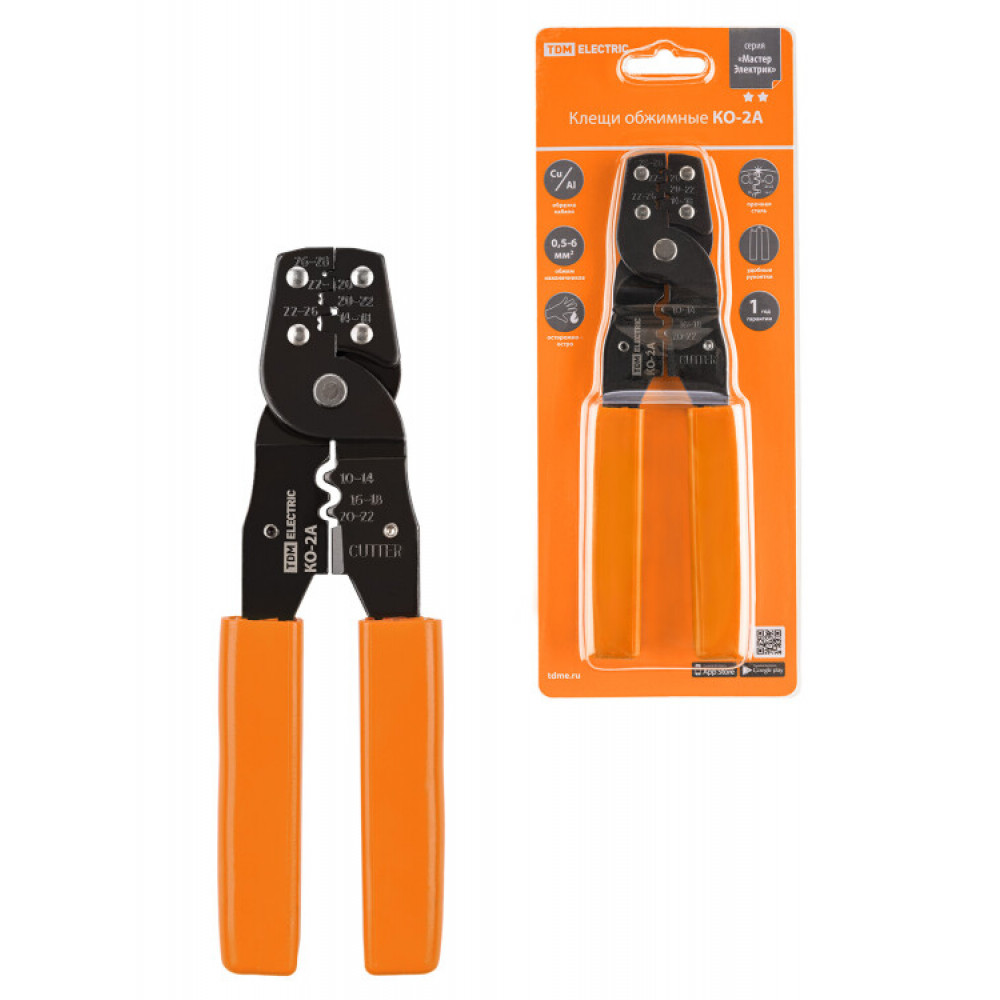 Описание Клещи обжимные КО-2А, обжим неизолированных автоклемм 0,5-6 мм, "МастерЭлектрик" SQ1001-0013