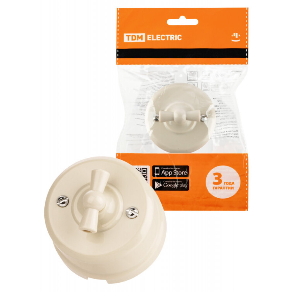 Выключатель поворотный 2-кл. с ручкой (бантик) 10А сл. кость «Виви» SQ1820-1306, Выключатель и переключатель открытого монтажа