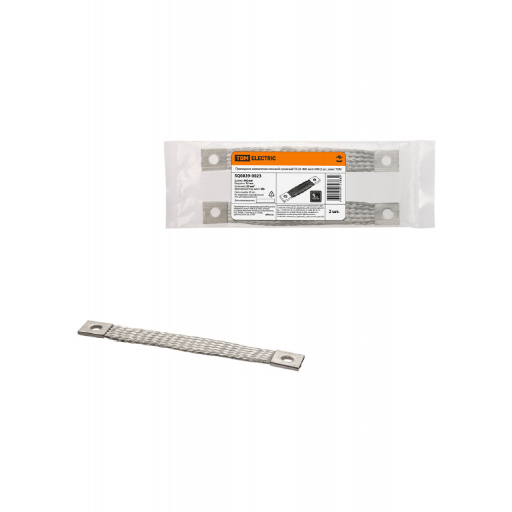 Описание Проводник заземления плоский луженый ПЗ 25-400 (2 шт. упак) ТDM SQ0839-0023