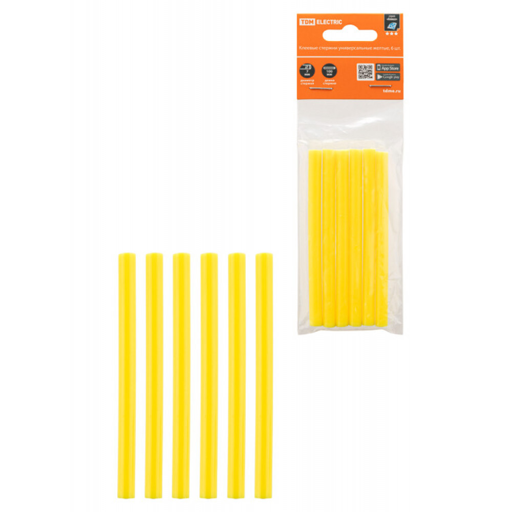 Описание Клеевые стержни универсальные желтые, 7 мм x 100 мм, 6 шт, "Алмаз" SQ1024-0506