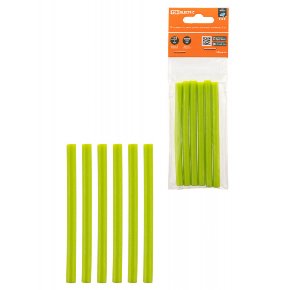 Клеевые стержни универсальные зеленые, 7 мм x 100 мм, 6 шт, "Алмаз" SQ1024-0505, Стержень клеевой
