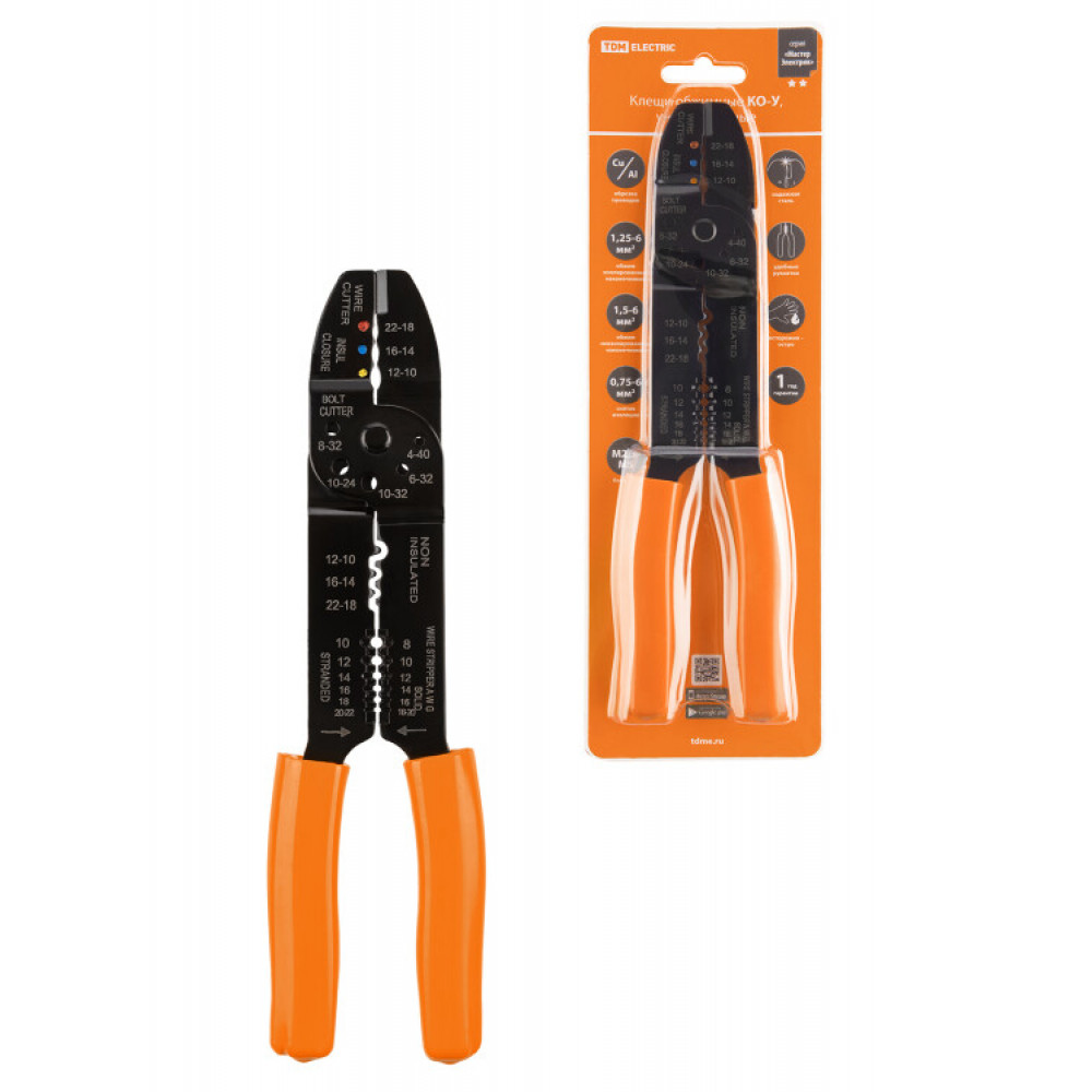 Клещи обжимные КО-У, универсальные (обжим, зачистка, винторез), "МастерЭлектрик" SQ1001-0008, Инструмент для обжима
