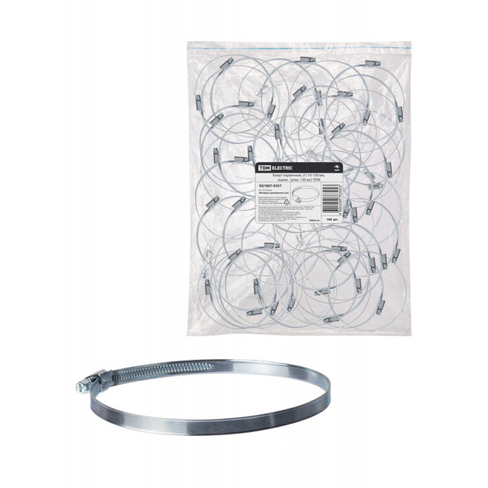 Описание Хомут червячный, d 110-130 мм, оцинк (упак. 100 шт) SQ1807-0357