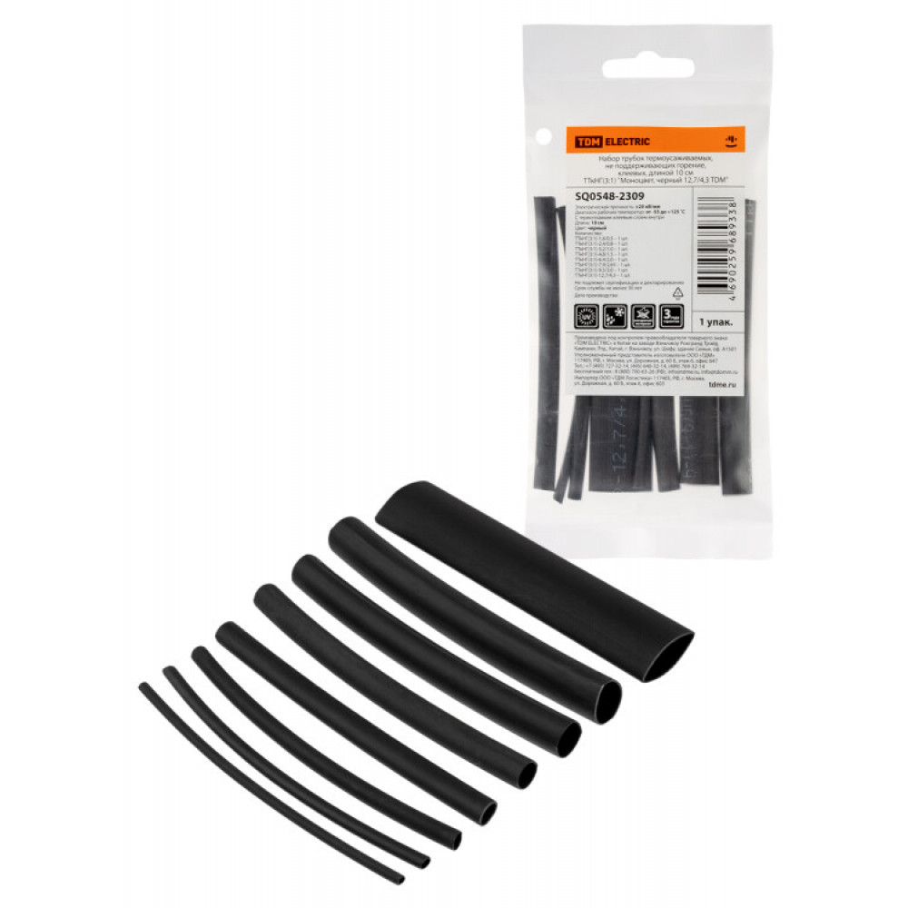 Набор трубок термоусаживаемых, клеевых "Моноцвет-диапазон, черный TDM" SQ0548-2309, Изделие термоусаживаемое