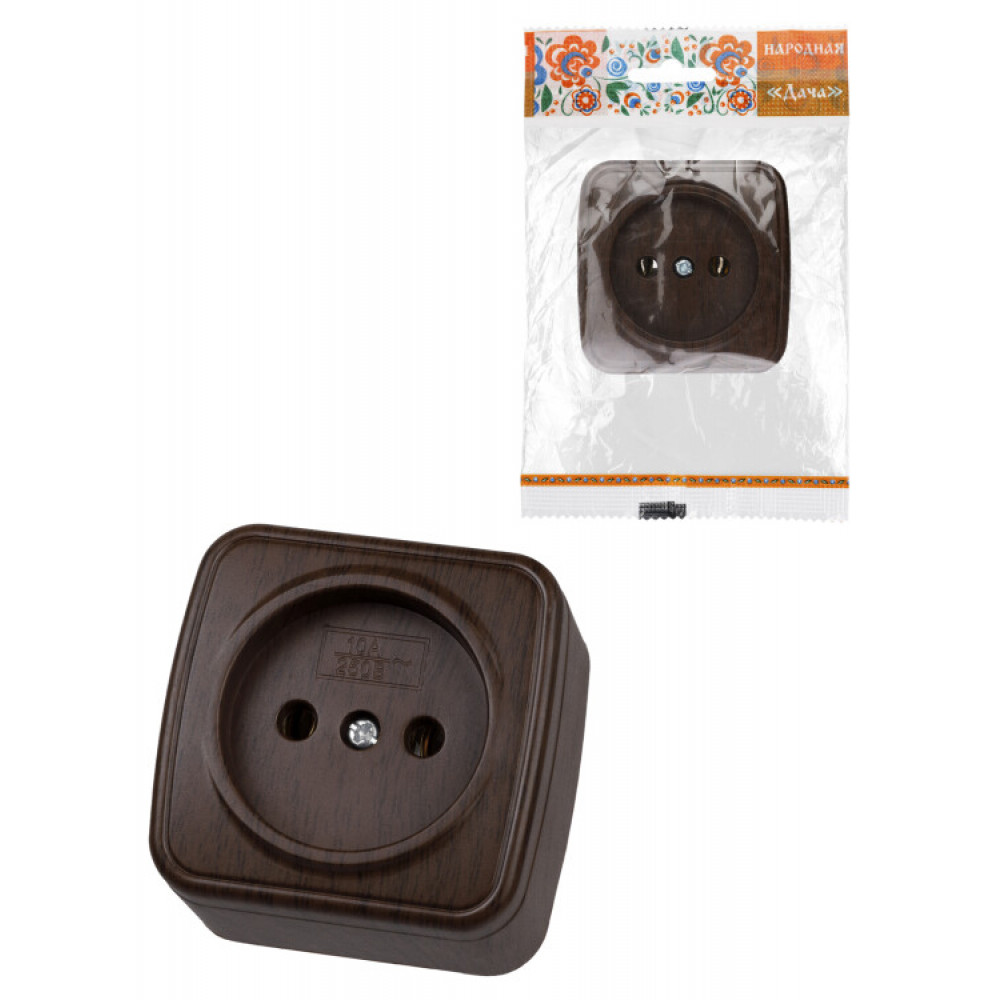 Описание Розетка 2П открытой установки IP20 10А, венге "Дача" Народная SQ1824-0027