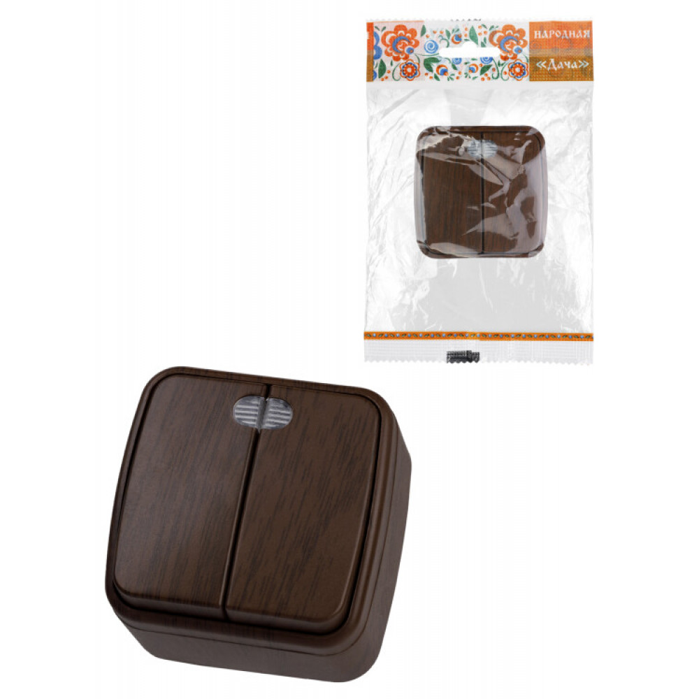 Описание Выключатель 2-кл. открытой установки с подсветкой IP20 10А, венге "Дача" Народная SQ1824-0044
