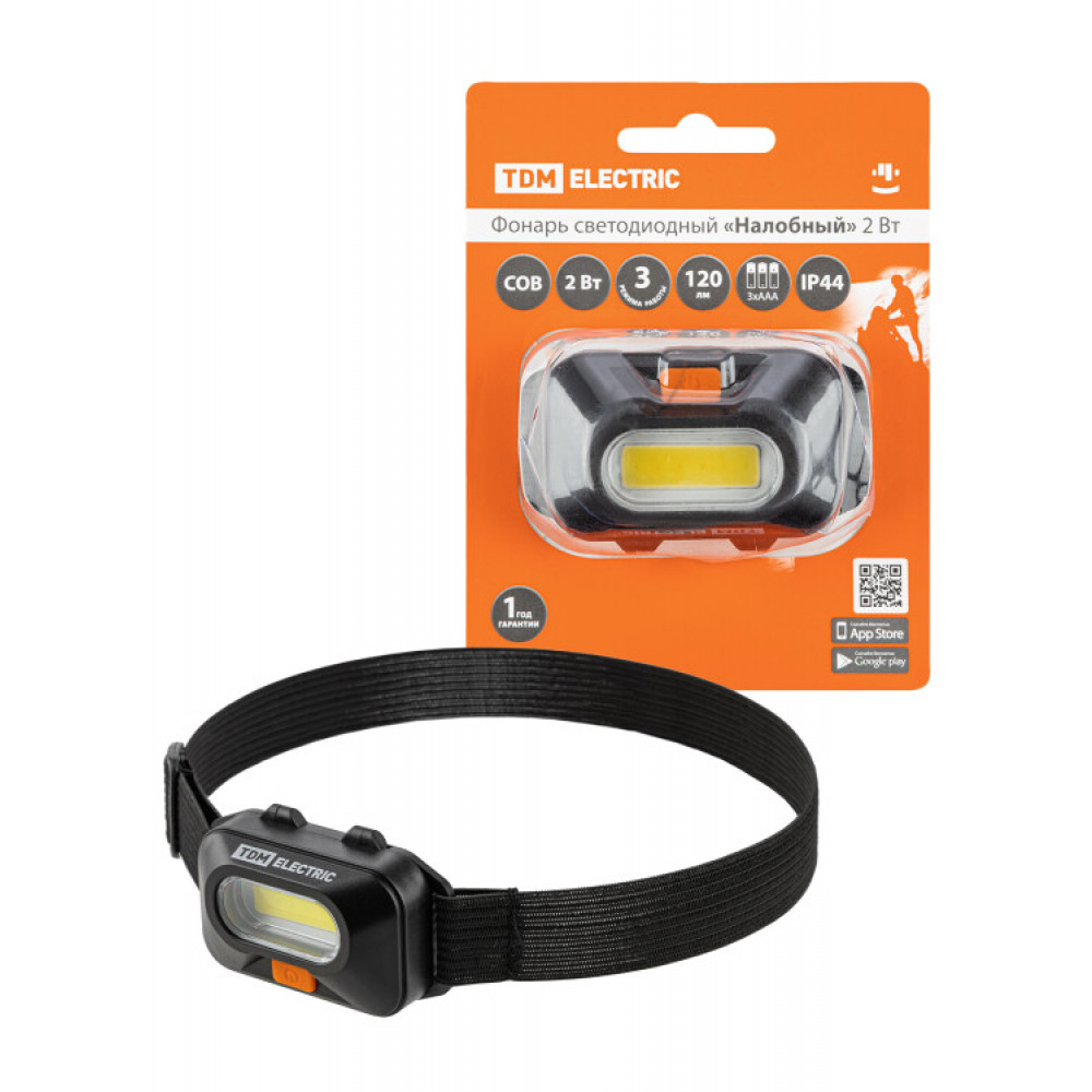 Фонарь светодиодный "Налобный" 2 Вт COB, 120 лм, бат. 3*AAA SQ0350-0072