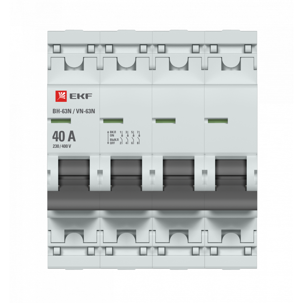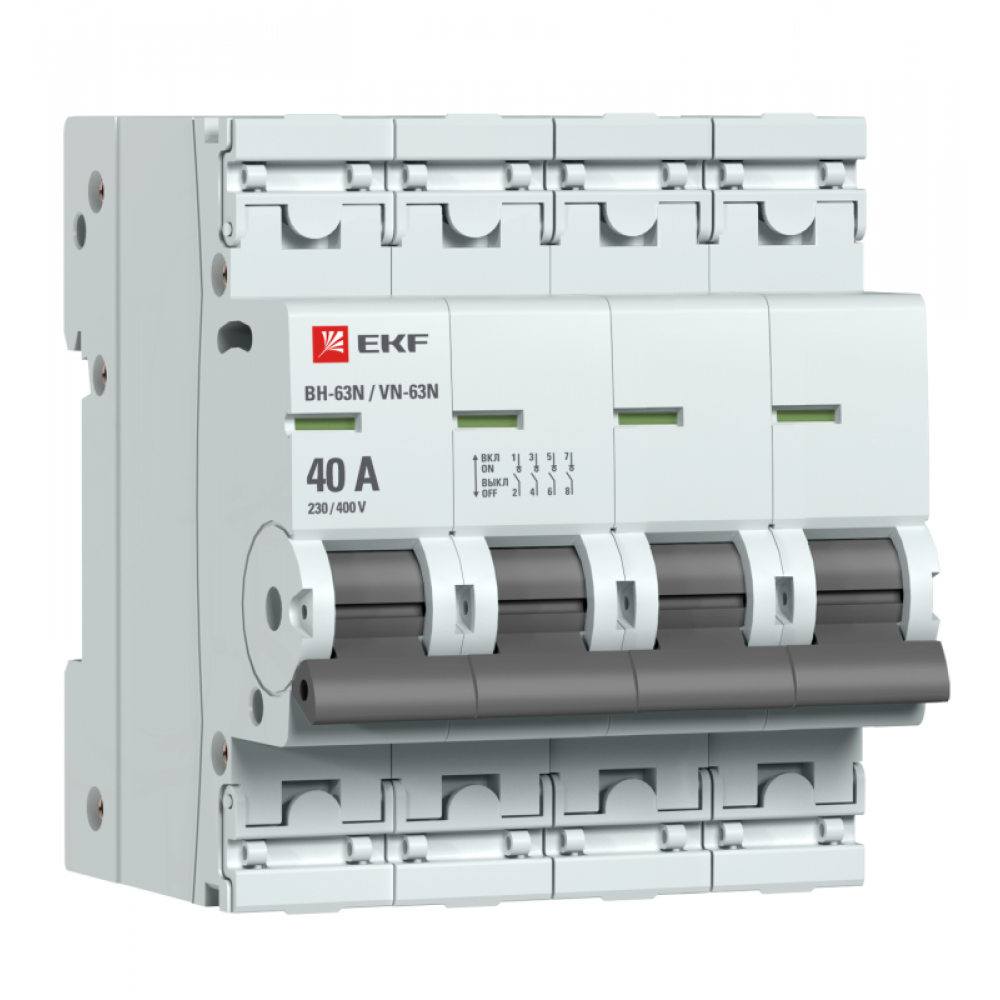 Выключатели нагрузки ВН-63N EKF PROxima являются обновлённой платформой успешно зарекомендовавших себя на рынке линейки выключателей нагрузки ВН-63 EKF PROxima. Выключатели нагрузки являются механическими коммутационными аппаратами и применяются для оперативных включений и отключений в электрических цепях переменного тока. Выключатели предназначены для коммутации активных и индуктивных нагрузок, включая двигатели, уже защищенные другими коммутационными аппаратами. Особенностью данной серии является усовершенствованная конструкция. В выключателях имеются пластиковые крышки, закрывающие доступ к винтовым зажимам и служащие для опломбирования выключателей, что исключает несанкционированный доступ к проводникам. Корпус выключателей усилен дополнительными заклепками для обеспечения его максимальной жесткости. Выключатели оборудованы удобной рукояткой управления, обеспечивающей надежное оперирование аппаратами. На лицевой панели выключателей нагрузки имеется цветовой индикатор реального состояния контактов. Конструкция двухпозиционного зажима обеспечивает удобн?