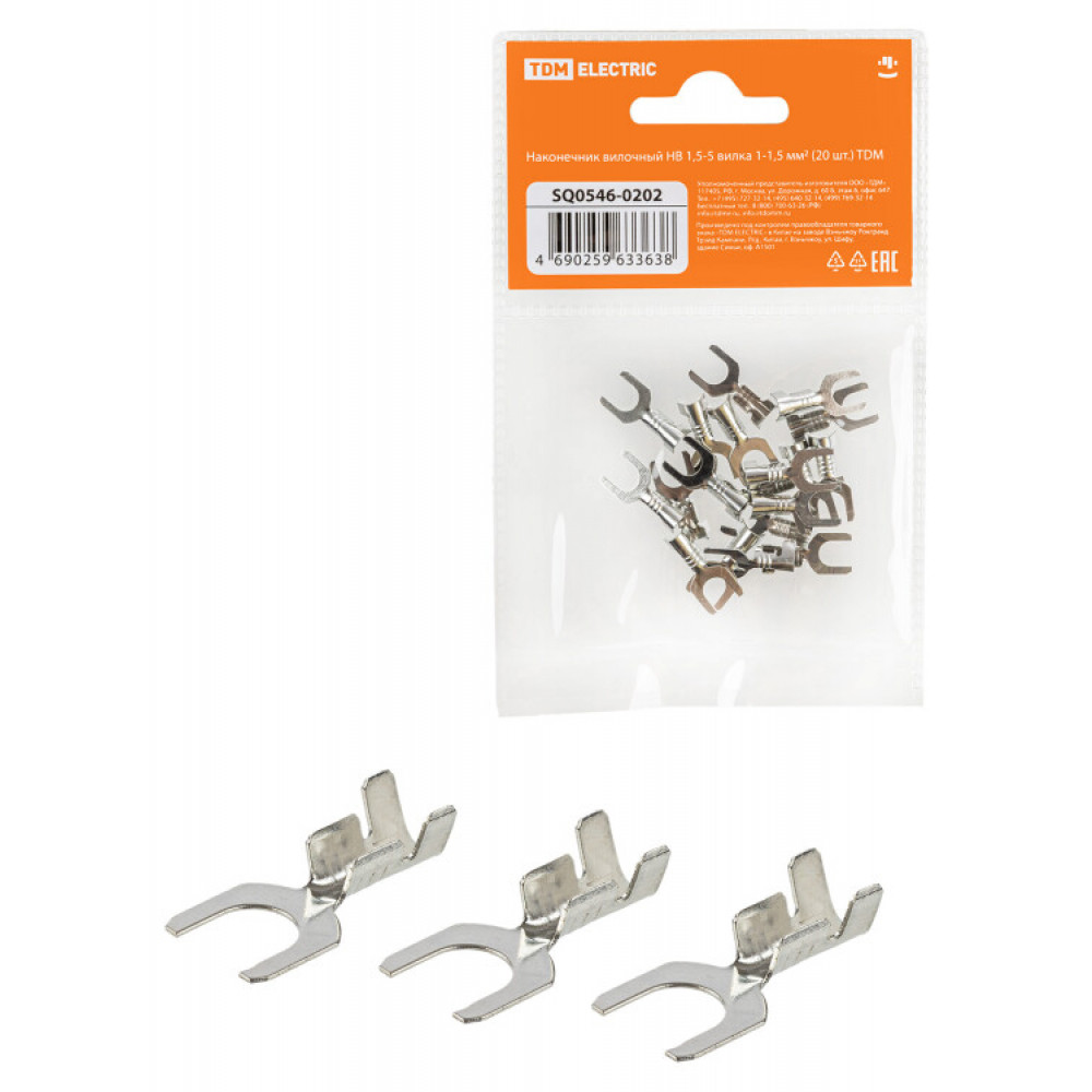Наконечник вилочный НВ 1,5-5 вилка 1-1,5 мм (20шт) SQ0546-0202, Наконечник, гильза