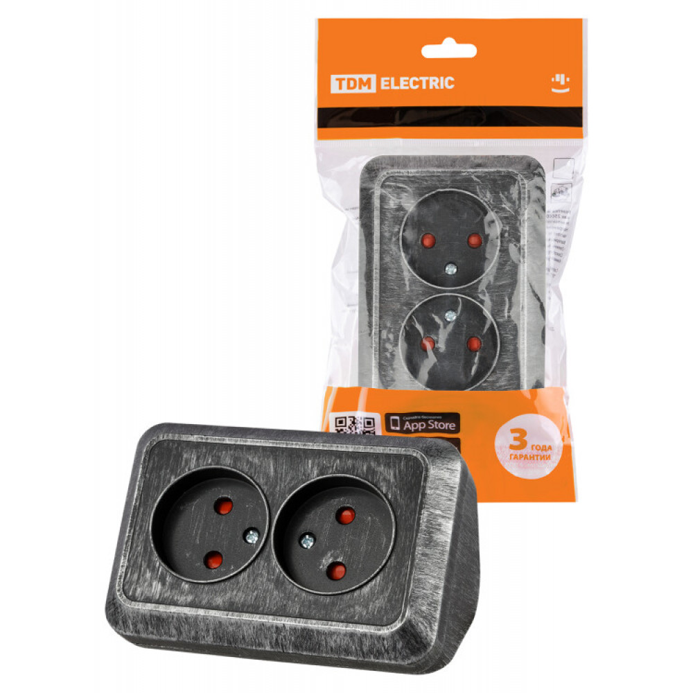 Описание Розетка угловая двойная 2П открытой установки с з/ш IP20 250В 10А серебро "Ладога" SQ1801-0389