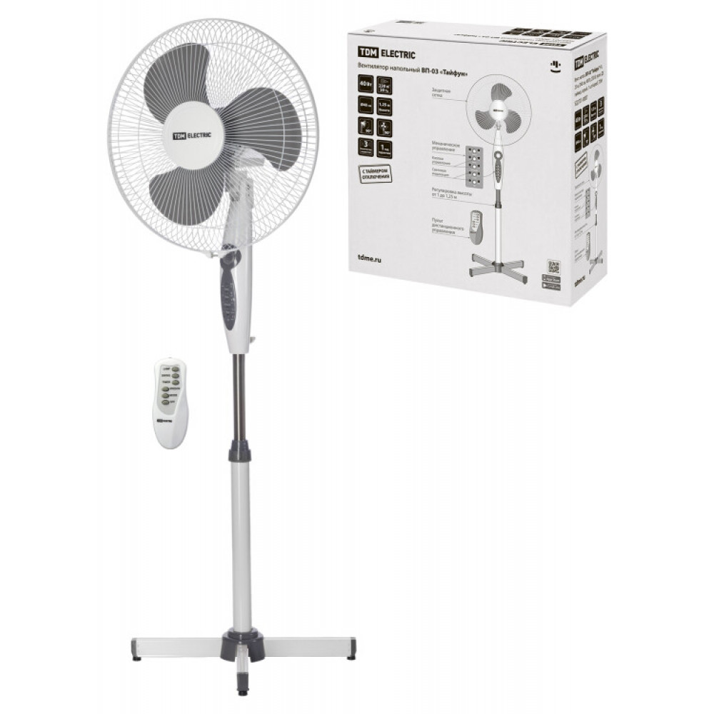 Описание Вент. напол, ВП-03 "Тайфун" H1,25 м, D40 см, 40 Вт, 230 В, пульт ДУ, таймер, серый, 1 шт/короб, SQ2701-0007