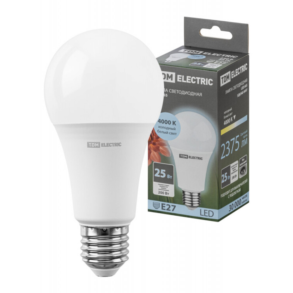 Лампа светодиодная А65 25 Вт, 230 В, 4000 К, E27 SQ0340-0497, Лампа светодиодная