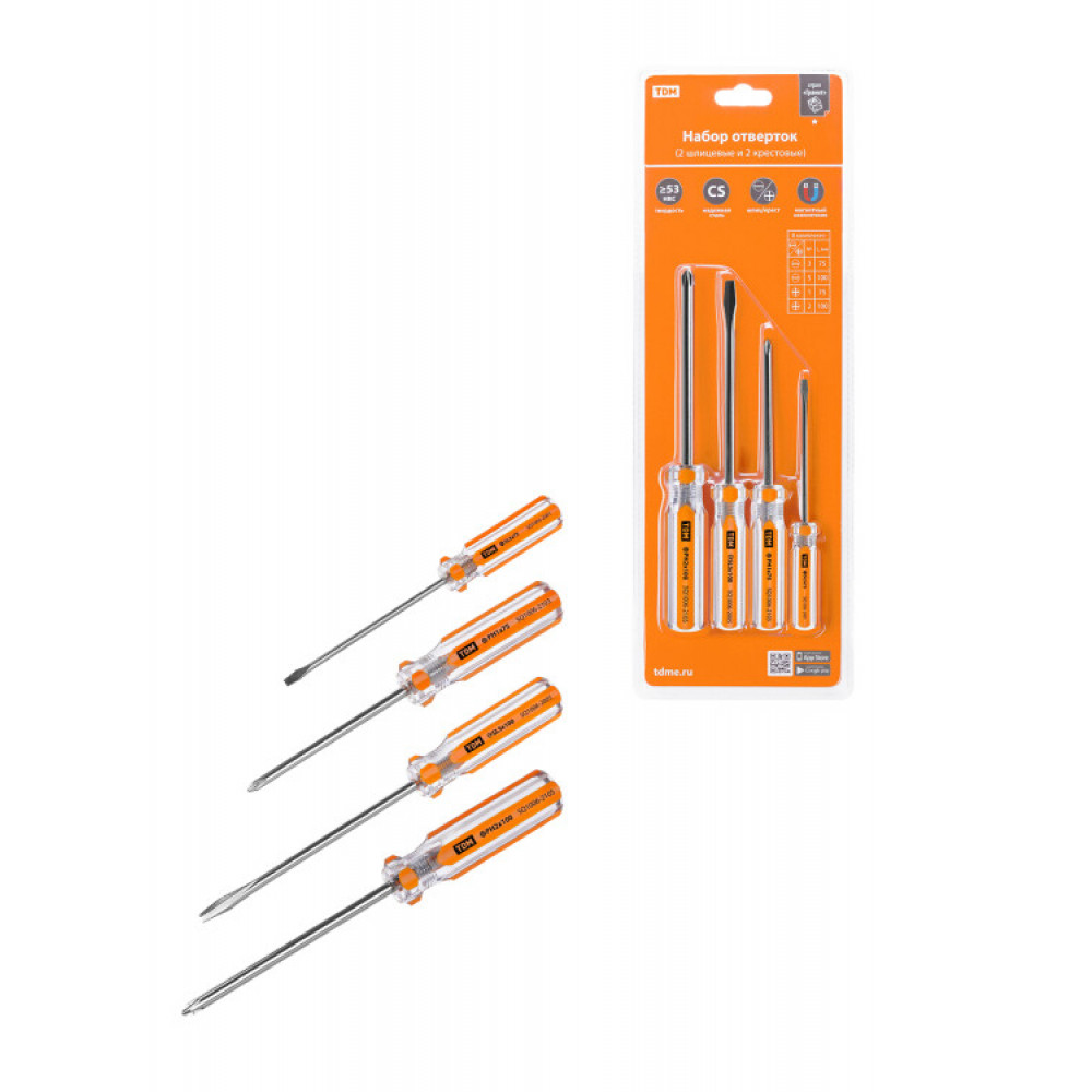 Набор отверток 4 шт.: SL3x75, SL5х100, PH1х75, PH2х100 (блистер), CS "Гранит" SQ1013-0101, Отвертка