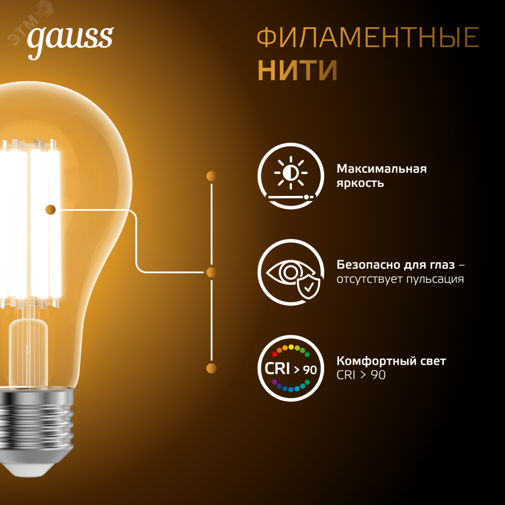 Описание Лампа Filament А70 30W 3000lm 2700К Е27 LED 1/10/40 102902130