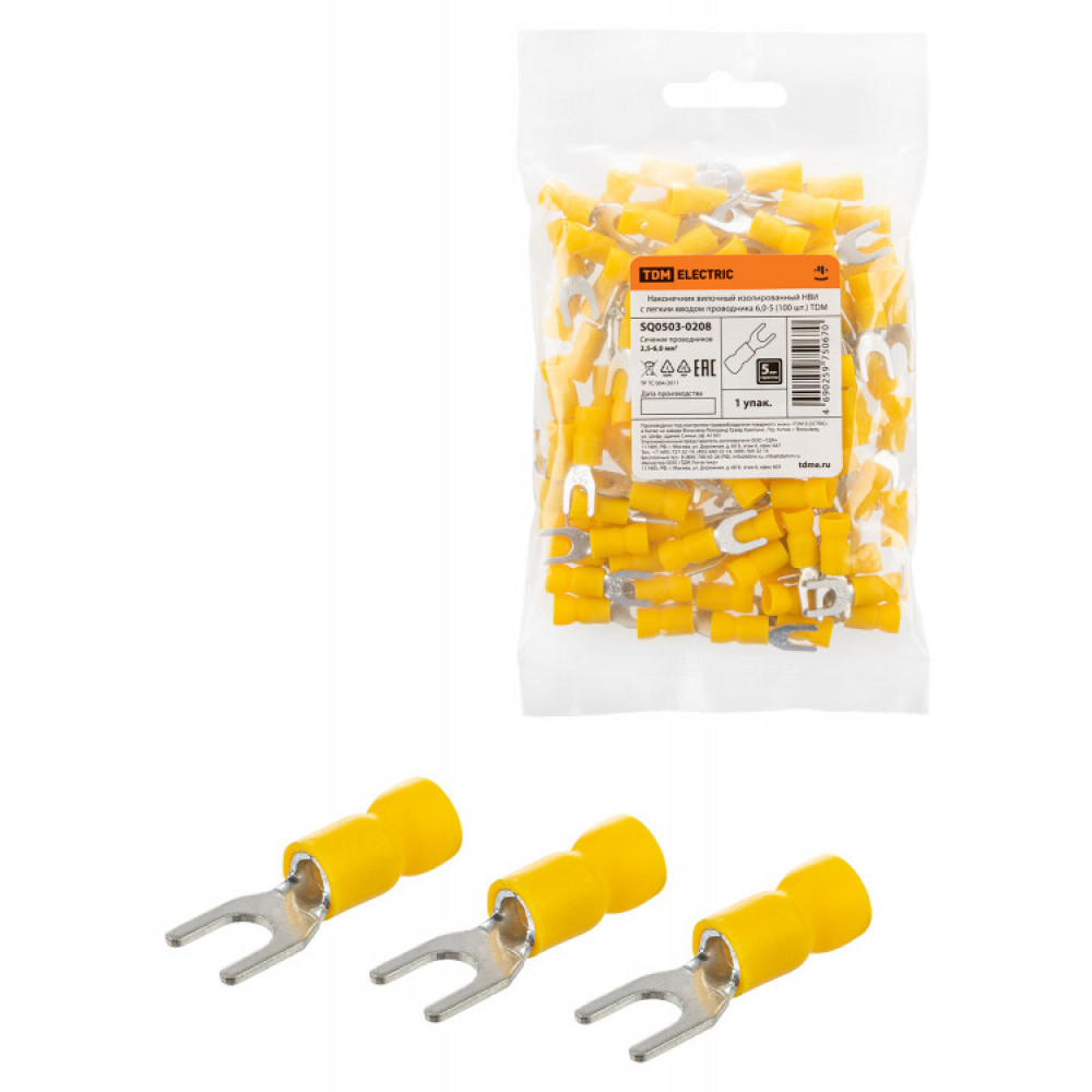 Наконечник вилочный изолированный НВИ с легким вводом проводника 6,0-5 (100 шт.) SQ0503-0208, Наконечник, гильза